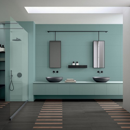 To πλακάκι Bold Line με την ιδιαίτερη απόχρωση του μπορεί να δώσει στο μπάνιο σας ένα μοντέρνο χαρακτήρα χωρίς όμως να είναι έντονο. Το χρώμα του λειτουργεί χαλαρωτικά στους χώρους και δίνει αίσθηση φρεσκάδας.