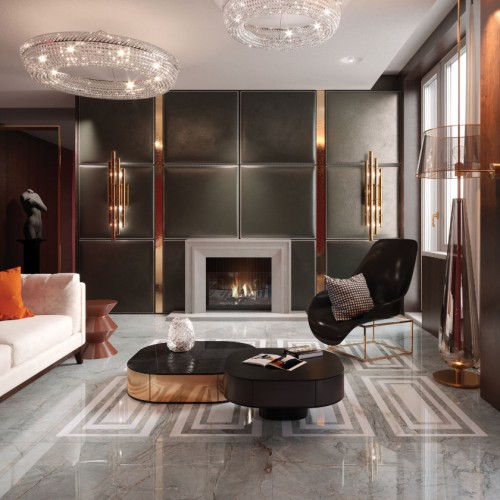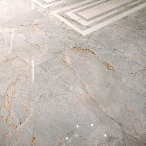 Γρανιτοπλακάκι 60x120 cm της σειράς Golden Pure με γυαλιστερή επιφάνεια που παραπέμπει σε γκρι μάρμαρο.