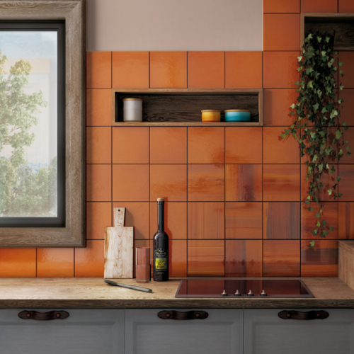 Πλακάκι πορσελανάτο 20x20 cm με γυαλιστερή επιφάνεια σε πορτοκαλί απόχρωση.