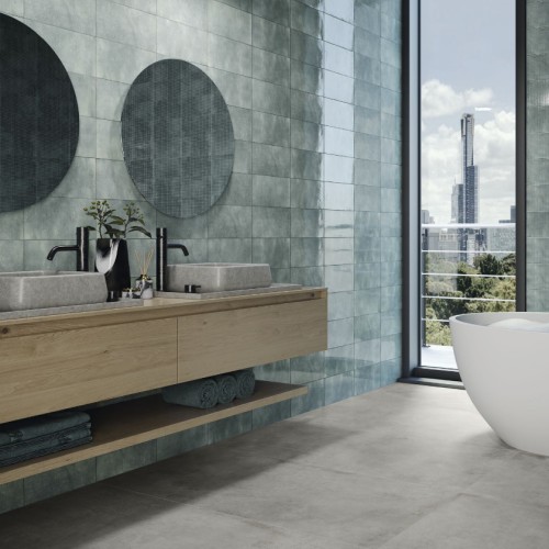 Πλακάκι πορσελανάτο (white body) Harlem 7.5x30 cm με γυαλιστερή επιφάνεια σε μπλε-πράσινη απόχρωση.
