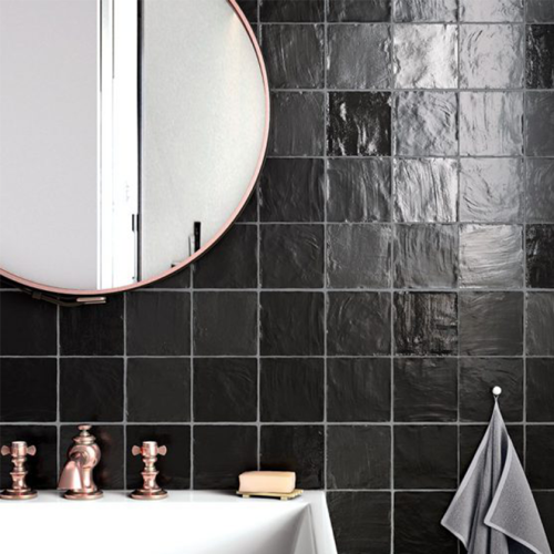 Πλακάκι μαύρο 10x10 cm πορσελανάτο (white body), με σατινέ επιφάνεια, κατασκευασμένο στην Ισπανία.