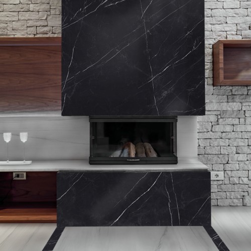 Η μαύρη ματ επιφάνειά του με τις λευκές γραμμές του μαρμάρου δίνει ένα εντυπωσιακό αποτέλεσμα είτε σαν πλακάκι σε τοίχο ή δάπεδο, είτε ακόμα και σαν υλικό για κατασκευές.