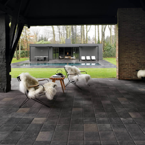 Γρανιτοπλακάκι 20x20 cm με επιφάνεια ματ-naturale και χρώμα σκούρο γκρι.