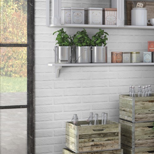Τουβλάκι λευκό διάστασης 6x25 cm με ματ-ανάγλυφη επιφάνεια από την εταιρεία Rondine.