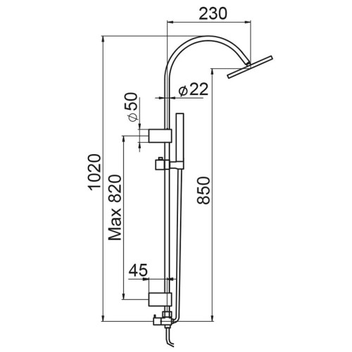 H στήλη ντους Punta Angoli συνδέεται με τη μπαταρία λουτρού.