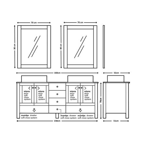 Προαιρετικά μπορείτε να προσθέσετε τους καθρέπτες, διάστασης 70x80 cm.