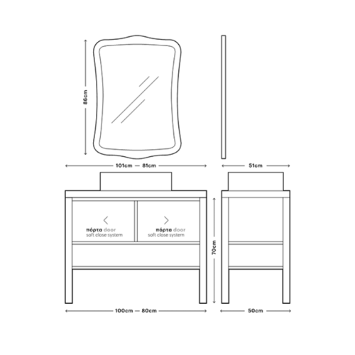 Διάσταση Πάγκου 101x51x70 cm 81x51x70 cm