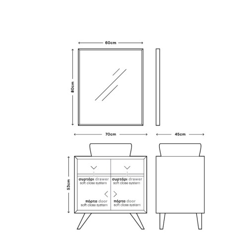 Προαιρετικά μπορείτε να προσθέσετε τον καθρέπτη με ύψος 80 cm καθώς και τον νιπτήρα