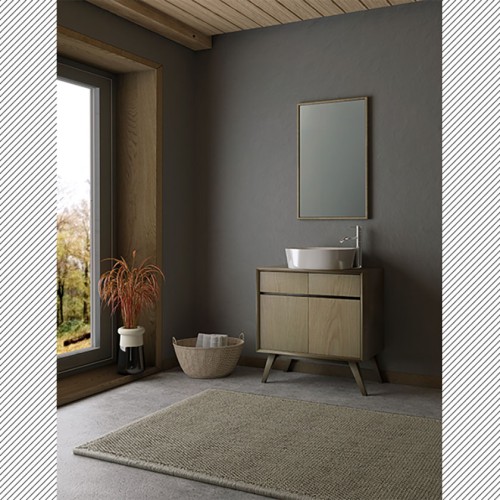 Το έπιπλο μπάνιου Firenze ΙI κατασκευάζεται από επενδεδυμένο φυσικό καπλαμά δρυ σε Κ/Π θαλάσσης 18mm