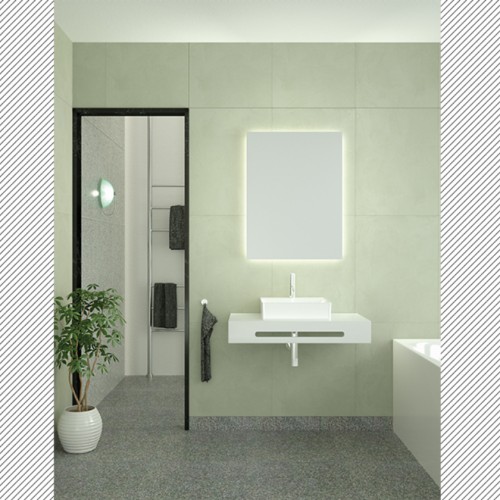 Διαθέτει πάγκο νιπτήρα από λευκή λάκα διάστασης 80x45x12 cm.