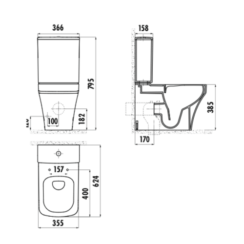 Σετ λεκάνη Solo Rim Off Rimless Χ.Π. Universal BW SO3610