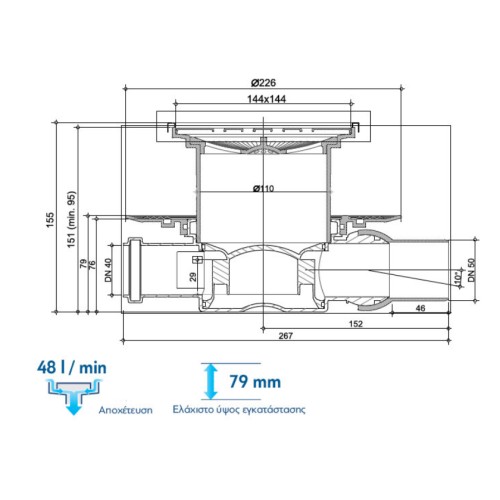 - Ρυθμιζόμενος σιφωνισμός μέχρι ύψος νερού 4 cm