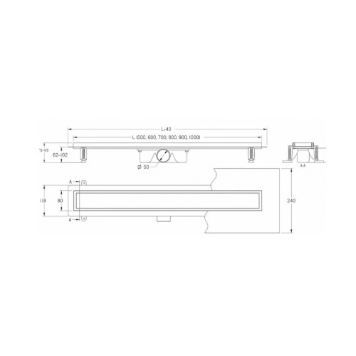 Γραμμικό σιφόνι ντουζιέρας ,με μήκος 80 cm .