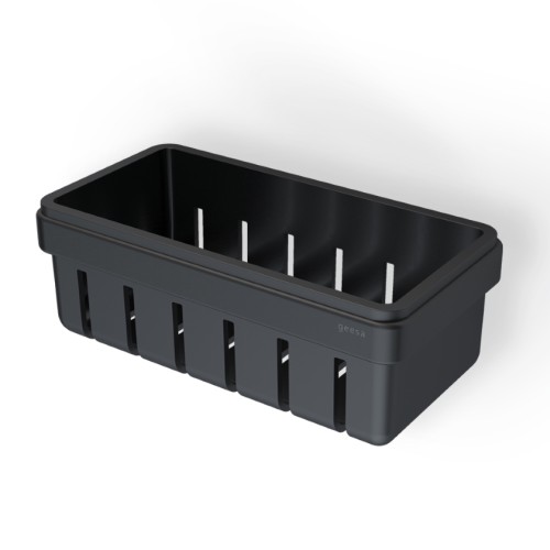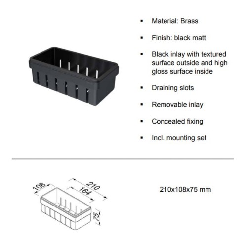 Σπογγοθήκη - μπουκαλοθήκη διάστασης 21x10,8x7,5 cm με αφαιρούμενο καλάθι, σε μαύρο ματ χρώμα.