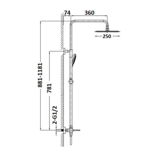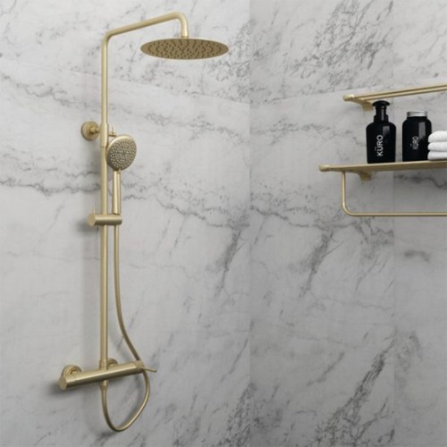 Στήλη ντους σε χρυσό ματ φινίρισμα. Η στήλη ντους Imperial έχει αυξομειωμένο ύψος ώστε να μπορεί να προσαrμποστει στις ανάγκες κάθε μπάνιου.