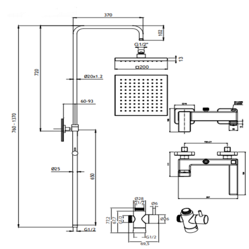 H στήλη ντους Profili Plus είναι 3 εξόδων, με αναδιπλούμενο ρουξούνι.