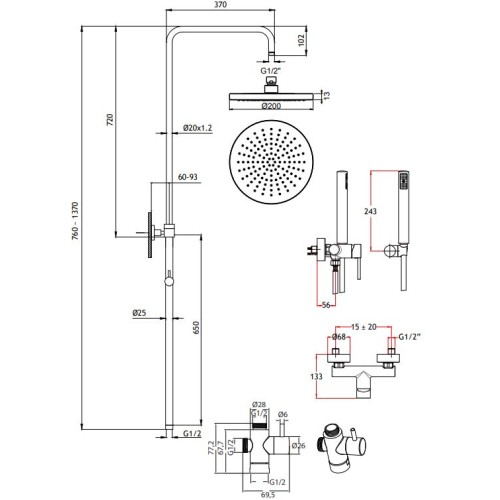 • Κεφαλή ντους anticalcare Φ20 εκ.