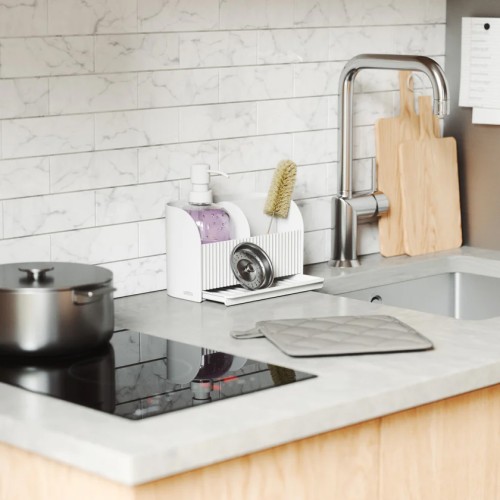 Θήκη οργάνωσης κουζίνας με ντισπένσερ σε λευκό χρώμα.